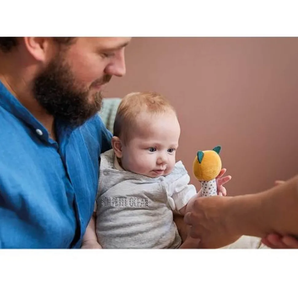 Le plus mignon des hochets pour stimuler bébé ! Cet adorable hochet maracas en tissu jaune et vert éveillera les sens de bébé, dès la naissance.
