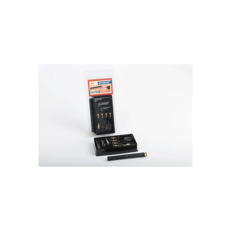 Découvrez ce kit d’accessoires pour maquette très pratique : action kit de la marque Amati. Couteau avec manche en nylon incassable et anneau en laiton. Grâce à son raccord avant, il est compatible avec tous les types de lames et une vaste gamme d’accessoires.Pratique et robuste, il permet de travailler en toute sécurité, y compris sur des pièces minuscules.Des accessoires spéciaux ont été créés pour ce couteau, adaptés à n’importe quel travail de modélisme : deux types de lames, une scie, un mandrin avec quatre pinces et, surtout, un très pratique étau manuel. Un outil qui en vaut mille.