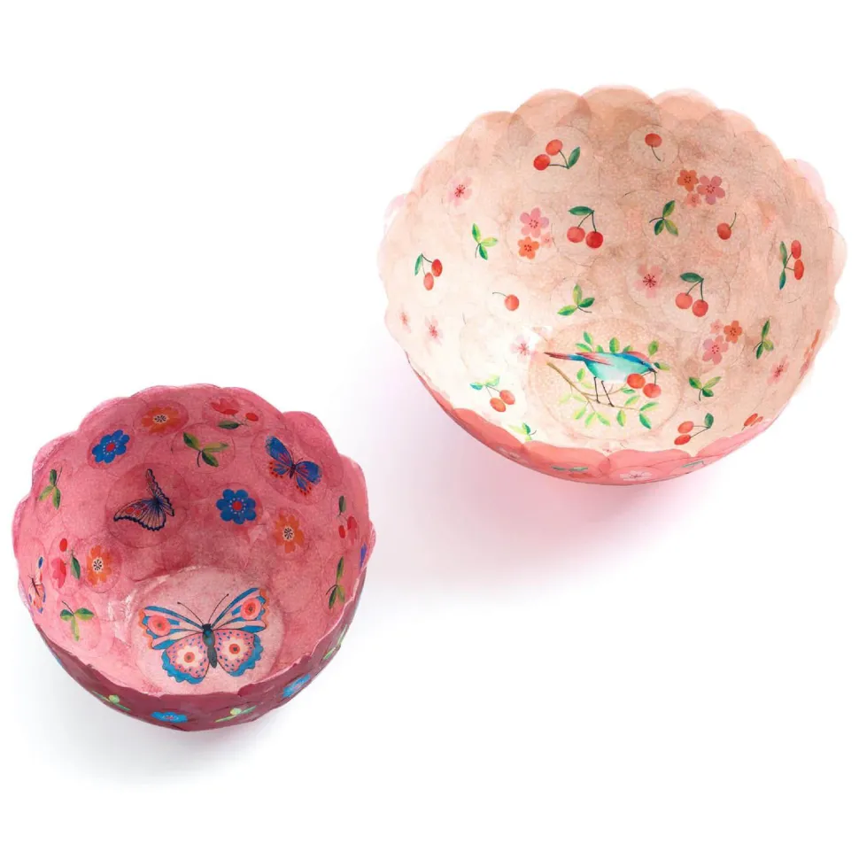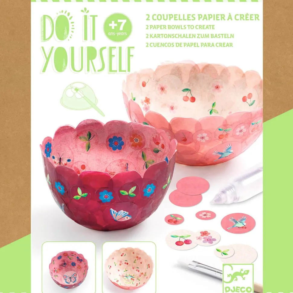 Un kit créatif complet pour fabriquer 2 coupelles décoratives en papier en utilisant uniquement du papier et de la colle.