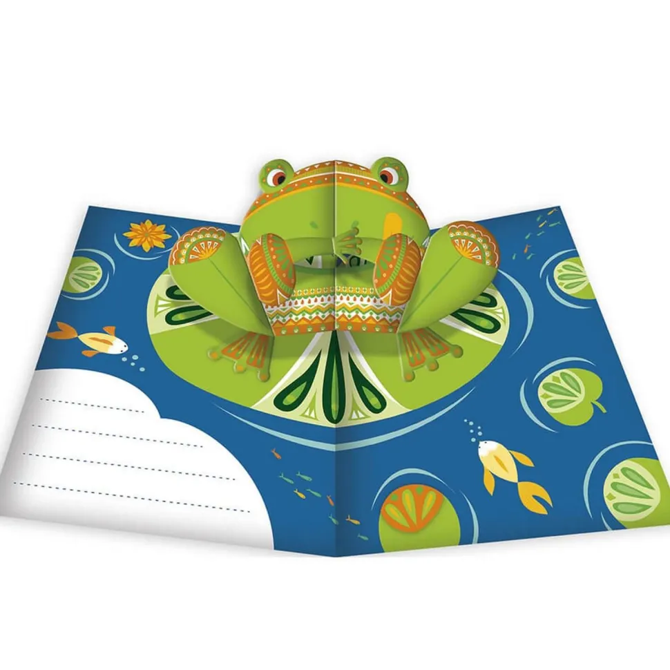 Si vous n’avez jamais réalisé de carte pop-up, pas de panique un livret pas à pas détaillé permet de réaliser chaque étape très facilement. Il suffit d’abord de coller les stickers sur les éléments prédécoupés, puis de les assembler avant de venir les coller sur les cartes. Vous retrouverez une grenouille, un tigre et un paon décliné pour chacun dans 2 coloris différents. Votre enfant pourra ensuite personnaliser ses cartes sur la partie avant ainsi qu’à l’intérieur grâce à des zones texte dédiées.