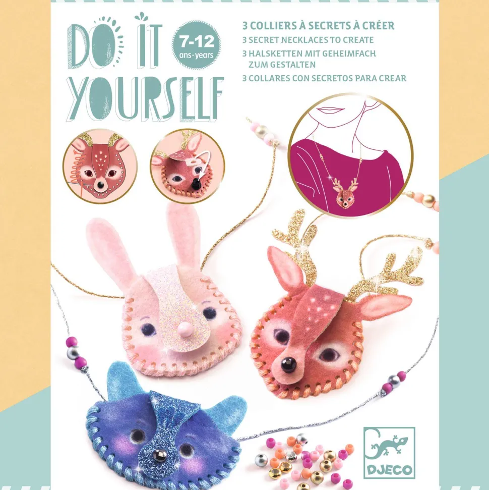 Découvrez la gamme DO IT YOURSELF avec le Kit création : Etincelant de la marque Djeco. Un kit créatif permettant de réaliser 3 colliers à secret « étincelants ». En suivant des instructions simples et détaillées, les enfants auront l’occasion de créer de jolis colliers tout en s’initiant à la couture. Chaque collier est orné d’un pendentif qui s’ouvre, offrant un espace secret pour y cacher un mini secret. Les colliers sont ajustables en longueur grâce aux fermoirs coulissants, permettant ainsi de les adapter à toutes les tailles de cou. Les finitions sont soignées, mêlant feutrine mate et pailletée, ainsi que des fils métallisés ornés de perles brillantes et mates, pour un résultat brillant et élégant. Chaque collier est également doté d’un pendentif qui s’ouvre, dans lequel l’enfant peut insérer une photo ou un petit souvenir personnel, rendant chaque création unique. Le pas-à-pas détaillé dans la notice guide les enfants tout au long de leur création, leur offrant ainsi une expérience de couture enrichissante. Ce kit est un excellent moyen de stimuler la créativité des enfants tout en leur permettant de réaliser un projet à la fois décoratif et personnel.
