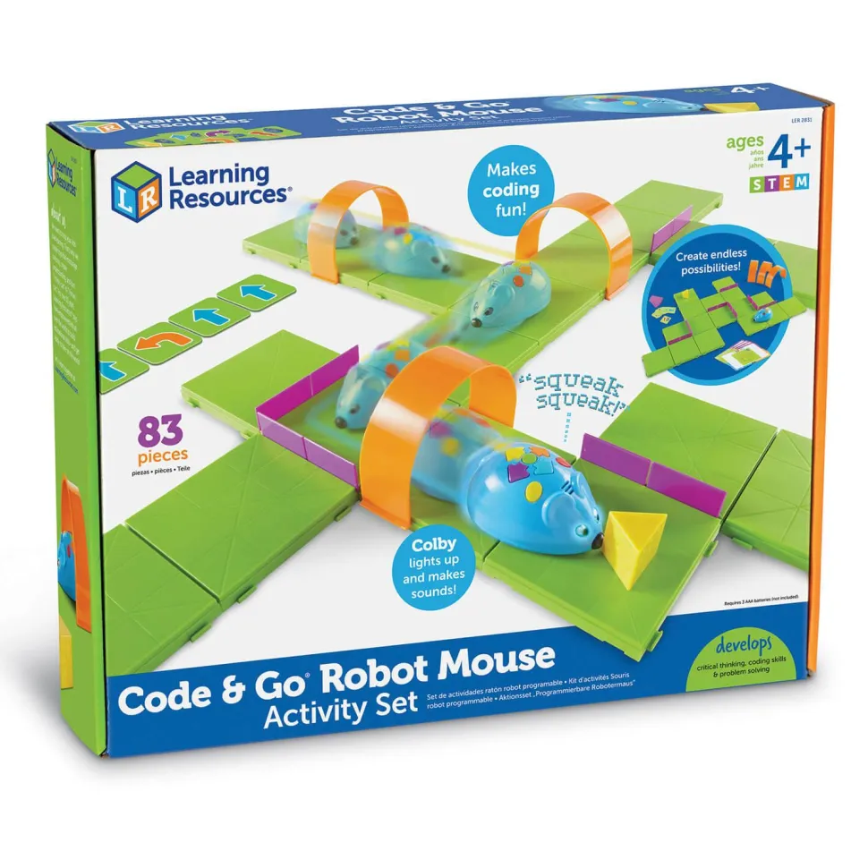 Spécialement conçu pour susciter l’intérêt des enfants pour la science, la technologie, l’ingénierie et les mathématiques, ce kit d’initiation au codage tout en couleurs permet aux jeunes enfants de mettre leur apprentissage STEM en pratique ! Les jeunes enfants vont ainsi découvrir les concepts élémentaires de codage et de programmation avec Colby, la souris robot. Ils programment une séquence de déplacements pour permettre à la souris de trouver son chemin jusqu’au morceau de fromage dans diverses formes de labyrinthe. Cet ensemble fascinant comprend 16 pièces de plateau, 22 murs de labyrinthe, 3 tunnels, 30 cartes de codage recto-verso, 10 cartes d’activités de labyrinthe recto-verso, un morceau de fromage en plastique et un guide d’activités.