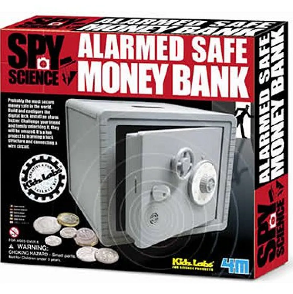 Kit de création – Coffre-fort avec alarme Plus personne n’osera ouvrir votre coffre-fort en votre absence, sinon l’alarme va sonner !Contenu du kit : – 1 porte avant – 2 autocollants à chiffres pour le cadran – 1 porte arrière – 2 caches-charnières – 1 cadran – 1 roue à rochet – 1 bras à rochet – 1 coupelle d’appui du ressort – 1 interrupteur – 1 coulisse-interrupteur – 1 cache-interrupteur – 1 cache-serrure – 1 serrure – 1 armature avant du coffre-fort – 1 partie arrière du coffre-fort – 1 partie supérieure du coffre-fort – 1 base du coffre-fort – 2 parties latérales du coffre-fort – vis simples – vis à rondelles – cosses et instructions de montage Dimension du coffre-fort monté : 15 cm.Fonctionne avec 1 pile AA 1.5 V non fournie.