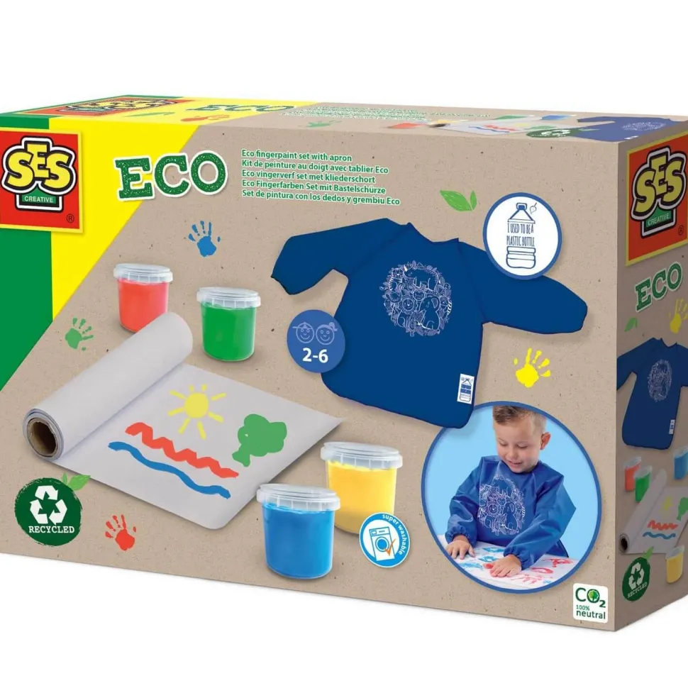 Découvre le kit de peinture au doigt avec le tablier eco de la marque SES Creative.