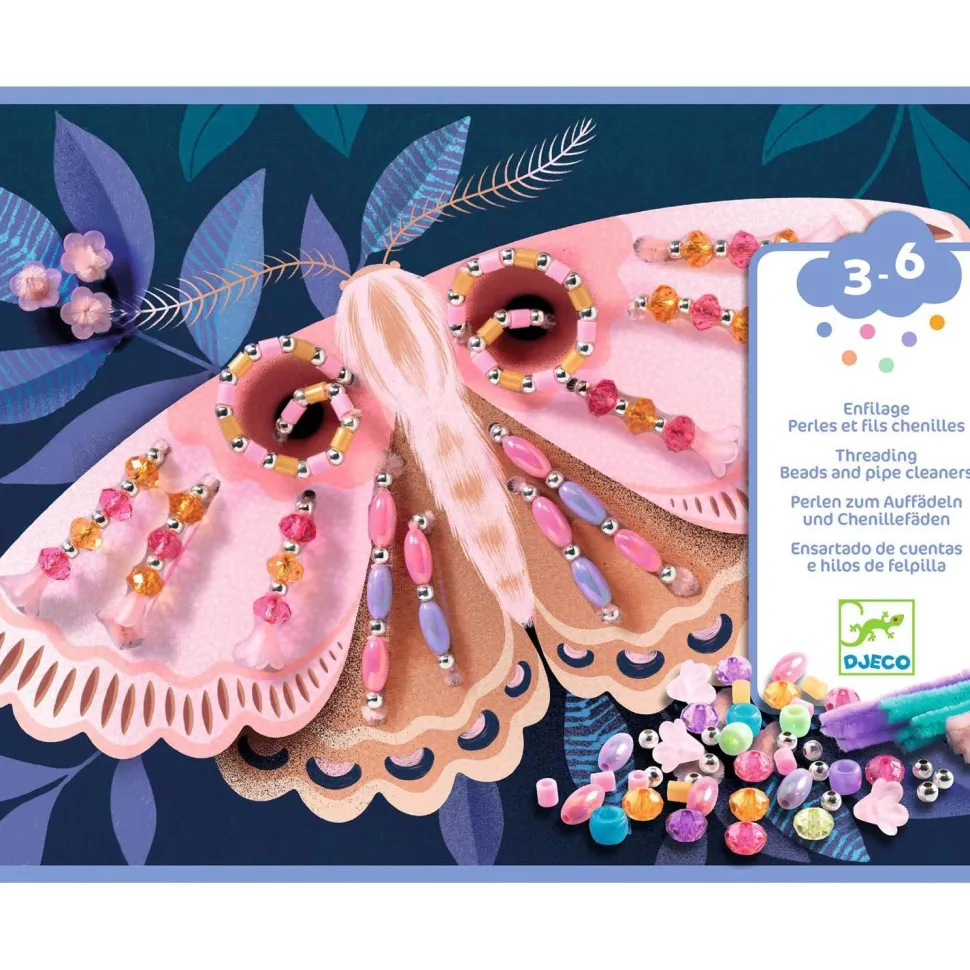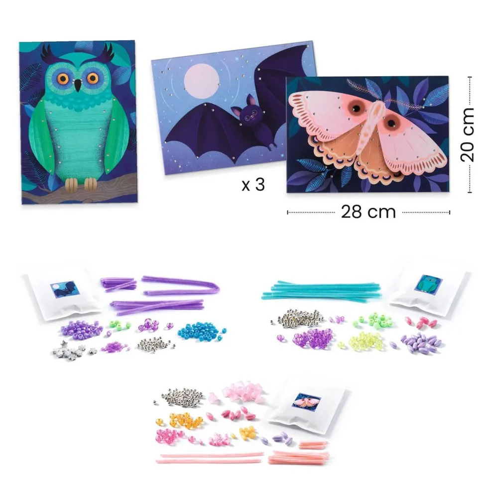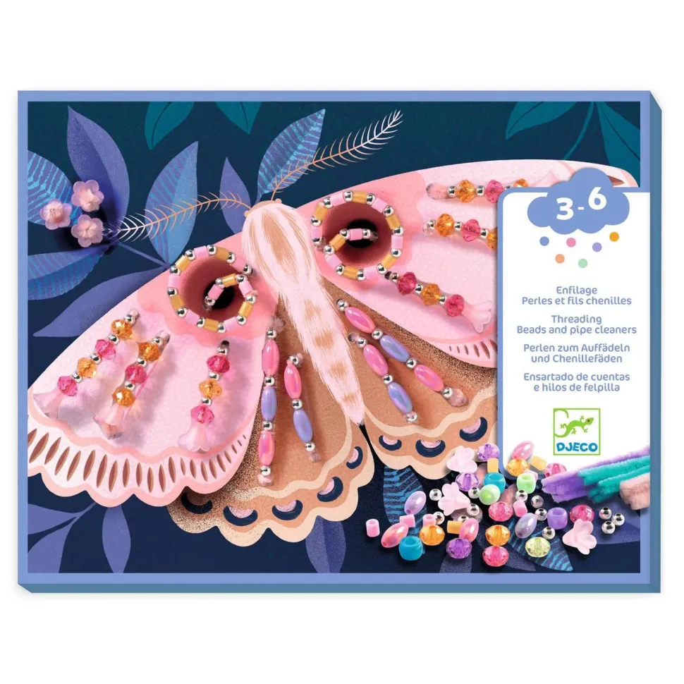 La marque Djeco présente Kit enfilage, Illuminer la nuit ! On enfile les perles sur les fils chenilles, en suivant les modèles du livret. On les insère ensuite dans les planches : les illustrations s’illuminent et se mettent en relief. Un produit en papier et carton certifié FSC®. Contenu : 3 planches épaisses, illustrées et percées. 420 perles. 45 fils chenilles. 1 livret. A partir de 3 ans.