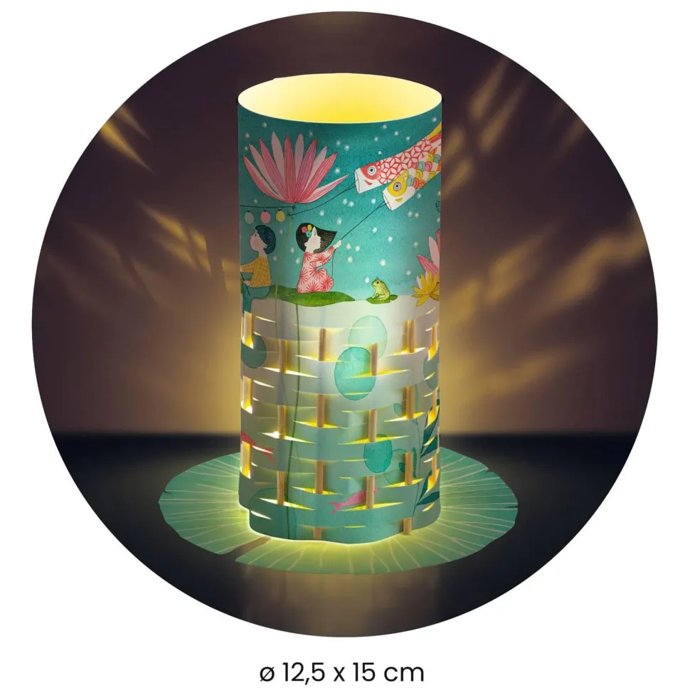 La marque Djeco présente Kit phosphores à créer, Danse des lucioles ! Un kit créatif avec 2 photophores en papier à tisser à l’aide de tiges en bambou naturel. Il suffit de se laisser guider par les instructions imprimées au dos des lanternes pour apprendre à tisser le papier. Une fois le tissage effectué, l’enfant dépose les délicates lanternes sur les plateaux nénuphars fournis pour créer une ambiance chaleureuse de jour comme de nuit. 2 bougies LED fournies avec timer de 30 minutes pour économiser les piles. Un produit en papier et carton certifié FSC®. Contenu : 2 photophores papier à tisser x 2 dimensions (+ 2 exemplaires additionnels d?entrainement), 2 sets de 15 tiges en bambou (2 longueurs), 1 planche de stickers double-face, 2 bougies LED (piles incluses), 2 plateaux décoratifs pour les lanternes, 1 feuillet de pas-à-pas détaillé. A partir de 7 ans.