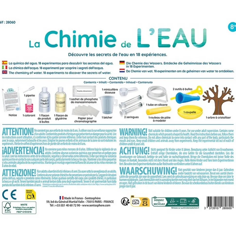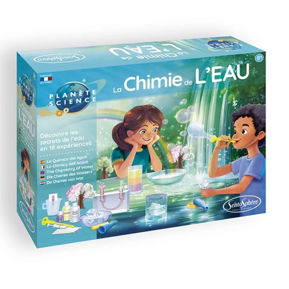 Ce mini laboratoire scientifique propose 16 expériences passionnantes pour s’amuser à comprendre la chimie et la physique de l’élément le plus essentiel à la vie : l’eau.