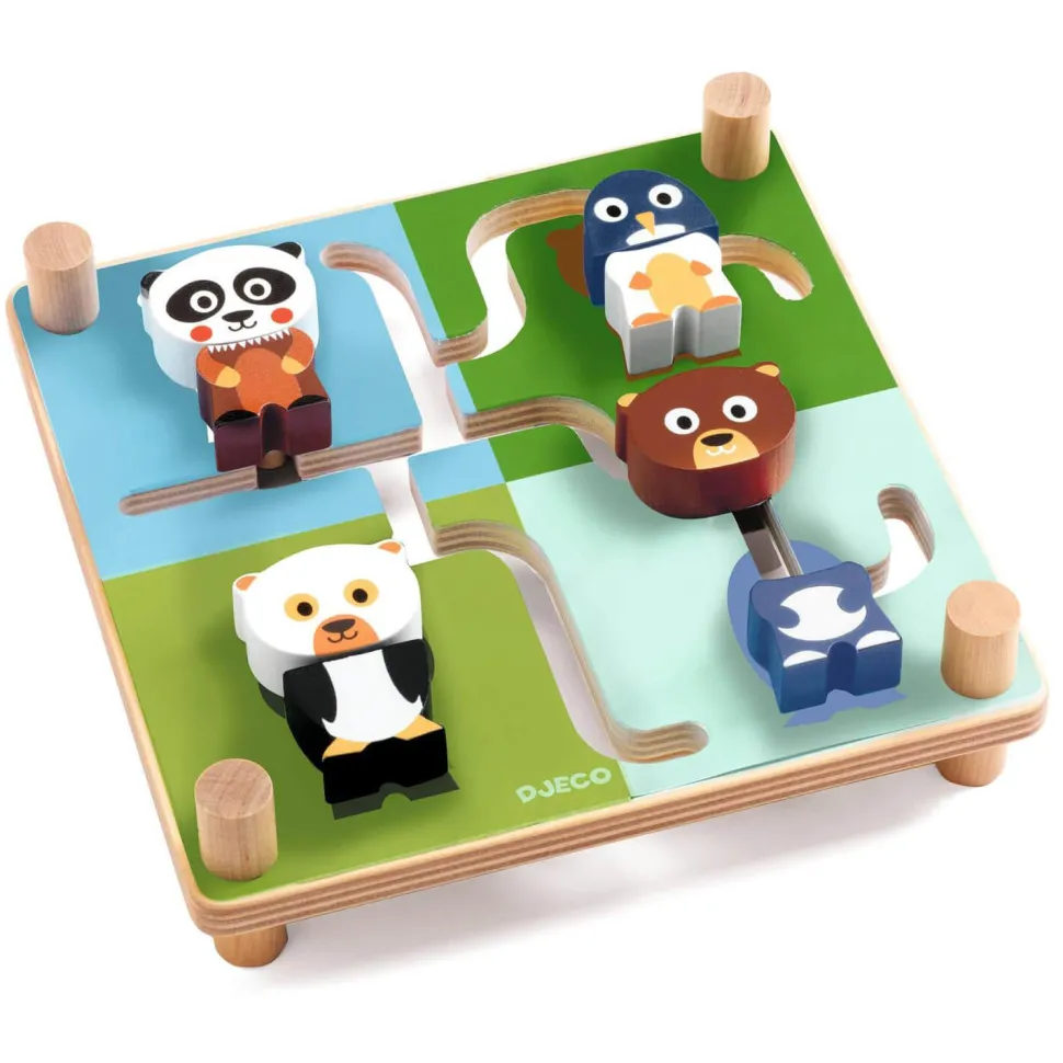 L’enfant va assembler les deux pieces de chaque animal dans son environnement en faisant glisser les pièces dans le labyrinthe.