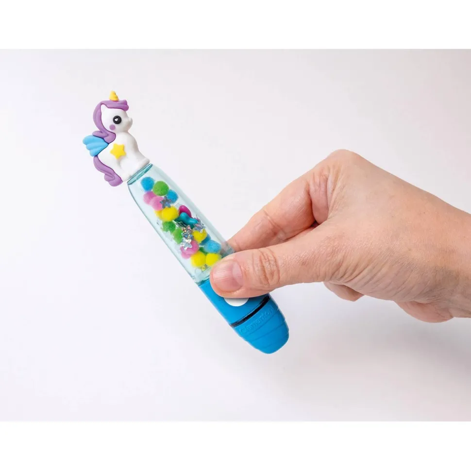 Le coffret contient une base pratique pour faciliter la création, des filtres, des embouts, de l’encre, des personnages, des paillettes et tous les accessoires nécessaires pour réaliser des surligneurs uniques et magnifiques.