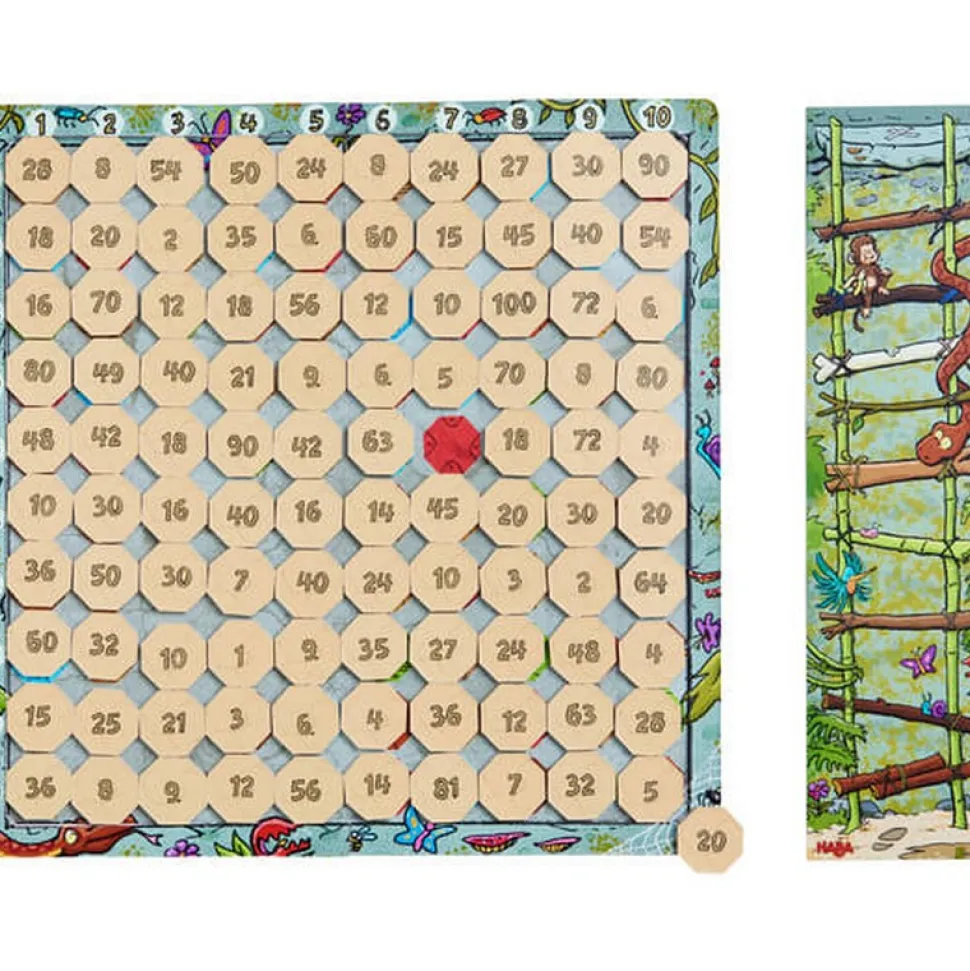 Apprendre ses tables de multiplication tout en s’amusant ? C’est maintenant possible avec l’aventure 1×1. Découvrez ce jeu d’apprentissage audacieux avec un principe d’auto-contrôle permettant à vos enfants d’apprendre et de consolider leurs connaissances des tables de multiplication de manière ludique. Tout au fond de l’impénétrable forêt tropicale se trouve une ville légendaire faite d’or. Mais l’entrée de cette ville est bloquée par une énorme porte qui ne s’ouvrira que si des énigmes sont résolues. Les capacités de calcul des joueurs vont être mises à l’épreuve : si vous multipliez correctement et trouvez les bons nombres, le mur aux énigmes se remplira avec vos résultats. Vous pourrez facilement contrôler avec le verso des plaquettes si vous avez bien compté ou non. Celui qui compte le mieux remporte cette passionnante expédition dans le monde de la multiplication.Ce jeu contient 1 mur aux énigmes (grand plateau de jeu), 1 circuit (petit plateau de jeu), 100 plaquettes-mosaïques, 23 cartes à jouer, 1 sablier, 4 aventuriers, 1 règle du jeu.Ce jeu constitue une véritable aventure passionnante dans le monde de la multiplication pour 1 à 4 joueurs à partir de 7 ans. Une partie dure environ 15 minutes.