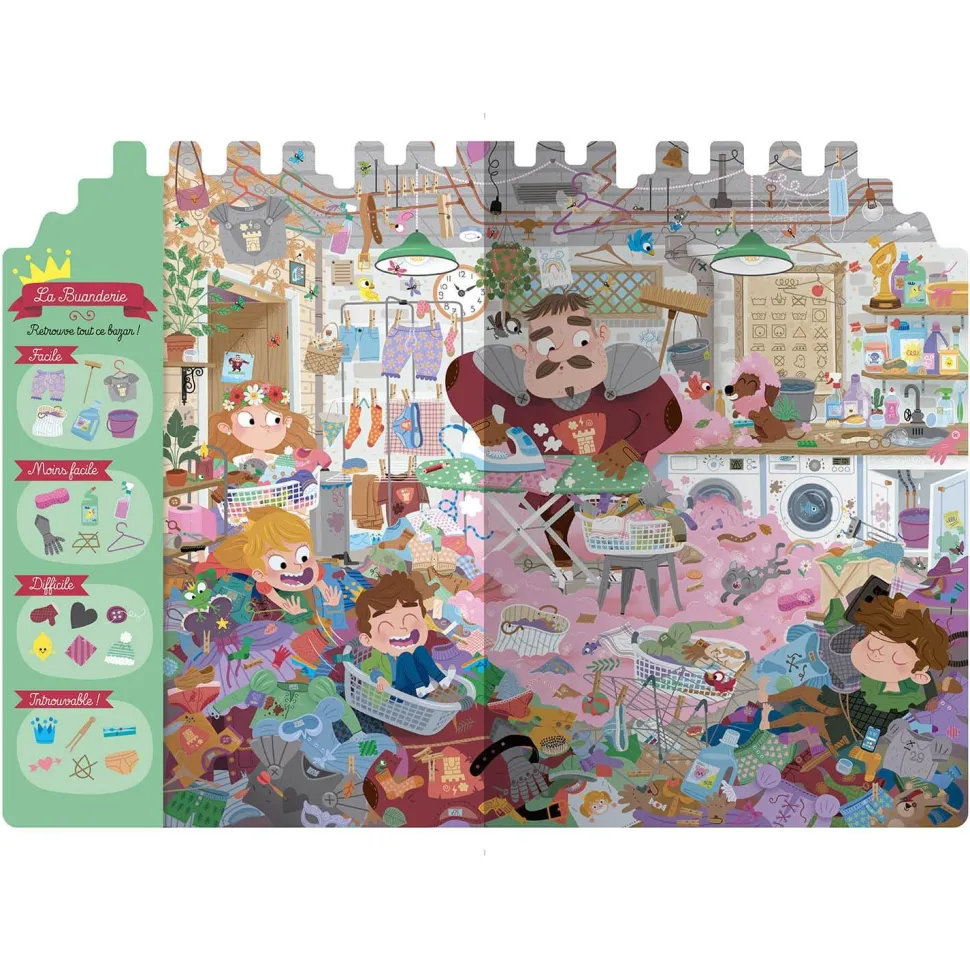 Découvrez le livre jeunesse de la marque Auzou !La célèbre princesse Dubazar, accompagnée de son fidèle acolyte le prince Dufouillis, visitent le donjon du Chevalier Fourbi !Pour ce 6e opus, on retrouve la même activité cherche et trouve, avec 26 éléments à retrouver dans chaque lieu du donjon du Chevalier : la chambre, la salles d’armes, la buanderie, les écuries, les oubliettes, la basse-cour.Ce livre-jeu favorise l’attention, l’observation et la concentration de l’enfant.Pour jouer seul ou à plusieurs. A partir de 3 ans.