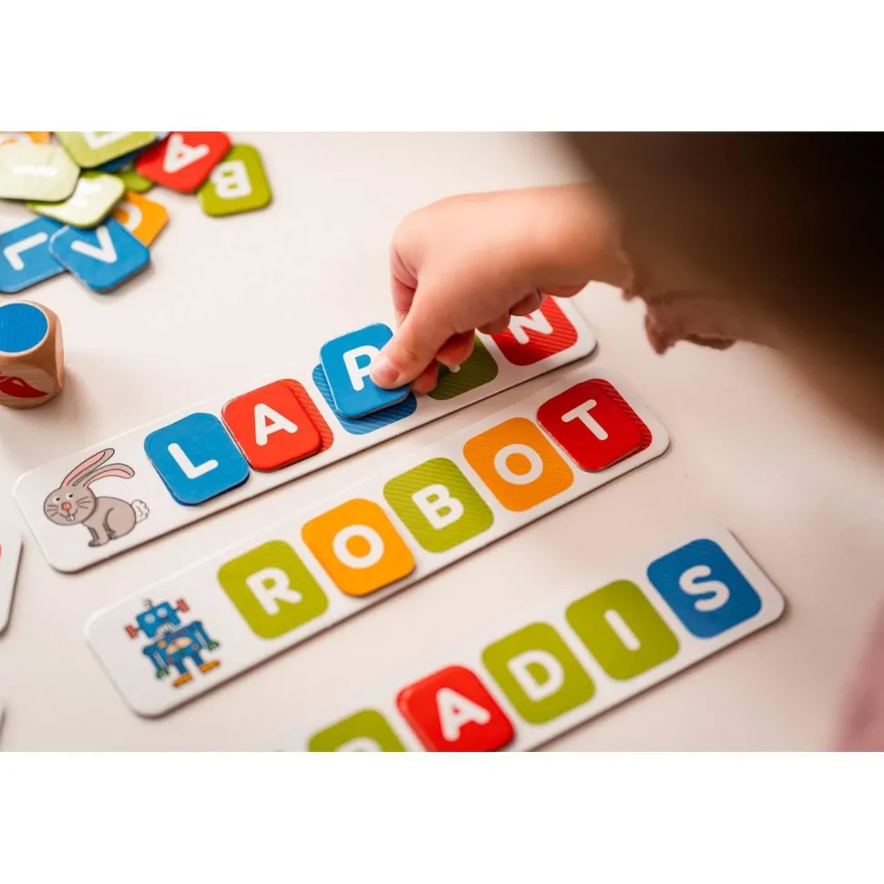 Face couleur, les joueurs trouvent une lettre manquante de cette couleur sur une planche et la posent dessus. Si aucune lettre de cette couleur ne manque, on relance le dé.
