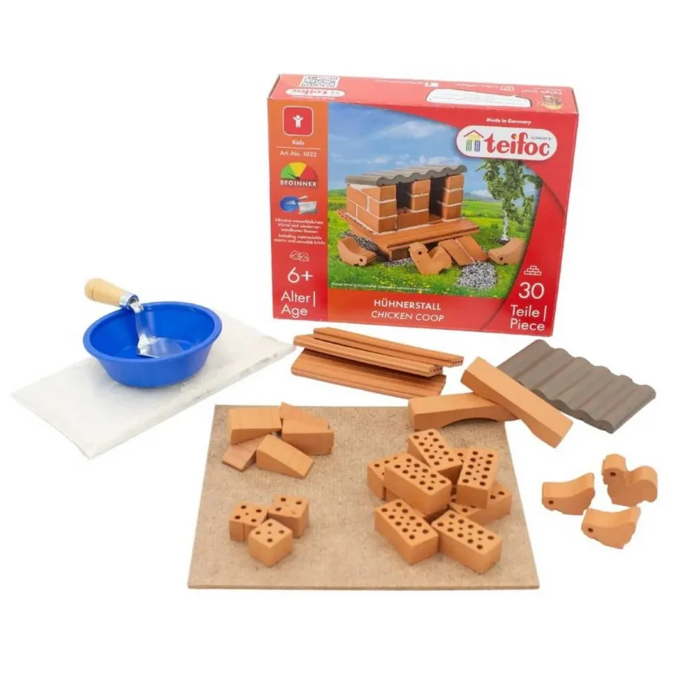 Venez avec nous à la ferme teifoc et construisez votre propre petit poulet à partir de 30 composants. La famille de poulets composée de deux poules et d’une coq est incluse dans le bâtiment et est heureuse de leur entrée dans leur nouvelle maison. Des murs avec de vraies briques et des mortiers et font l’expérience d’histoires de fermes passionnantes dans un jeu créatif.