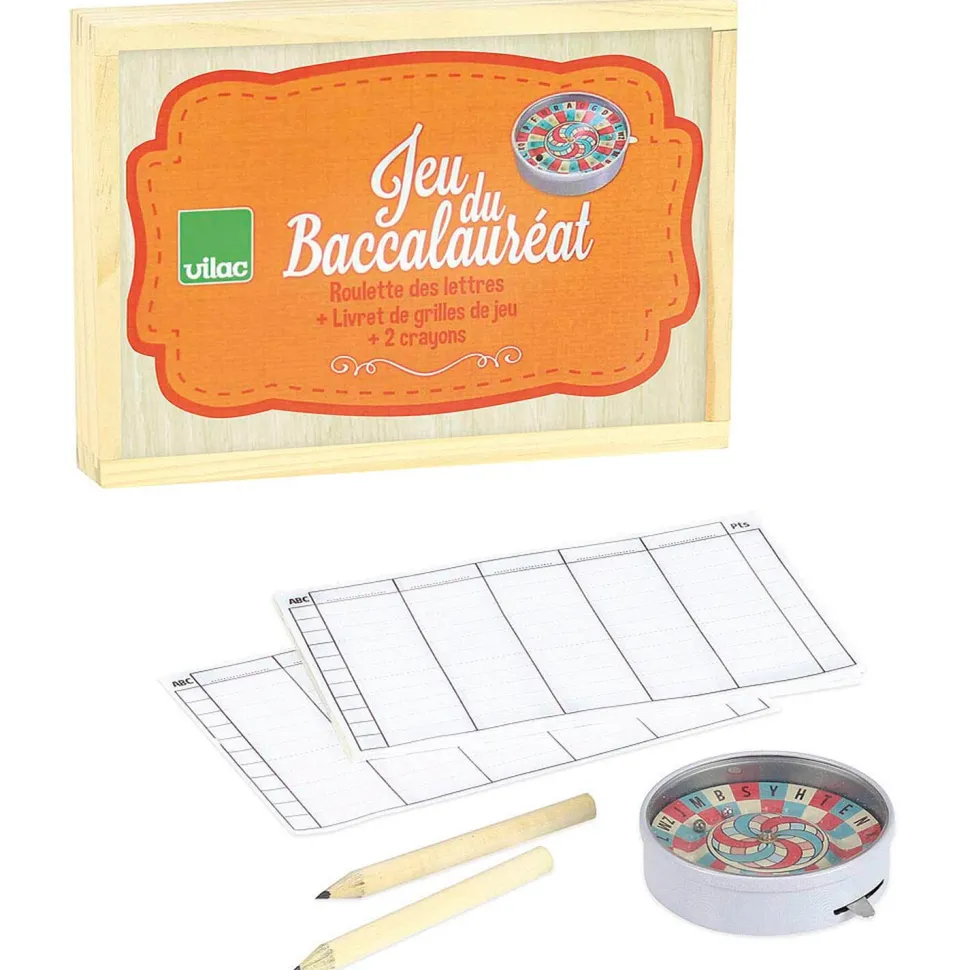 Le P’tit Bac un classique des jeux de lettres qui a fait jouer des générations d’enfants !Vous connaissez sûrement ce jeu dont le but est d’écrire un mot d’après la première lettre donnée. Découvrez une nouvelle version du P’tit BAC signé Vilac avec ce kit utile pour jouer au petit BAC partout !Pour varier de la version classique, ce P’tit bac revisité est associé à une roulette fantasque qui décide des règles du jeux ! Ce jeu est livré dans un coffret en bois avec sa roulette, des grilles de jeux et 2 crayons. Ce jeu est idéal pour l’apprentissage de l’écriture par les plus petits à partir de 5 ans tout en s’amusant. Dimensions : 7.5 x 3 x 12.5 cm.
