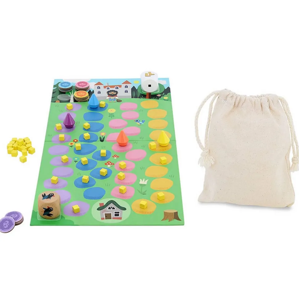 La marque Vilac s’est appropriée ce conte pour vous proposer un jeu familial où il faut être le plus rapide pour rapporter le trésor de l’ogre. Comme le Petit Poucet, semez vos miettes de pain sur le parcours puis revenez vite avec les pièces d’or que vous aurez dérobées à l’ogre. Mais attention, les oiseaux peuvent manger vos miettes de pain et ralentir votre retour…