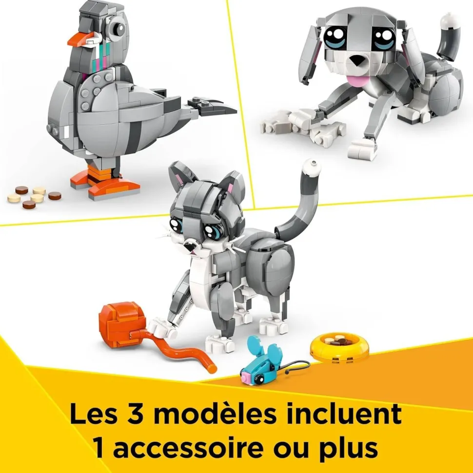 Les enfants passionnés d’animaux inventent de charmantes histoires avec le set du chat joueur avant de le transformer en chien ou en pigeon. Les fans de LEGO® profitent d’une construction amusante avant d’imaginer des aventures avec 3 adorables animaux différents.