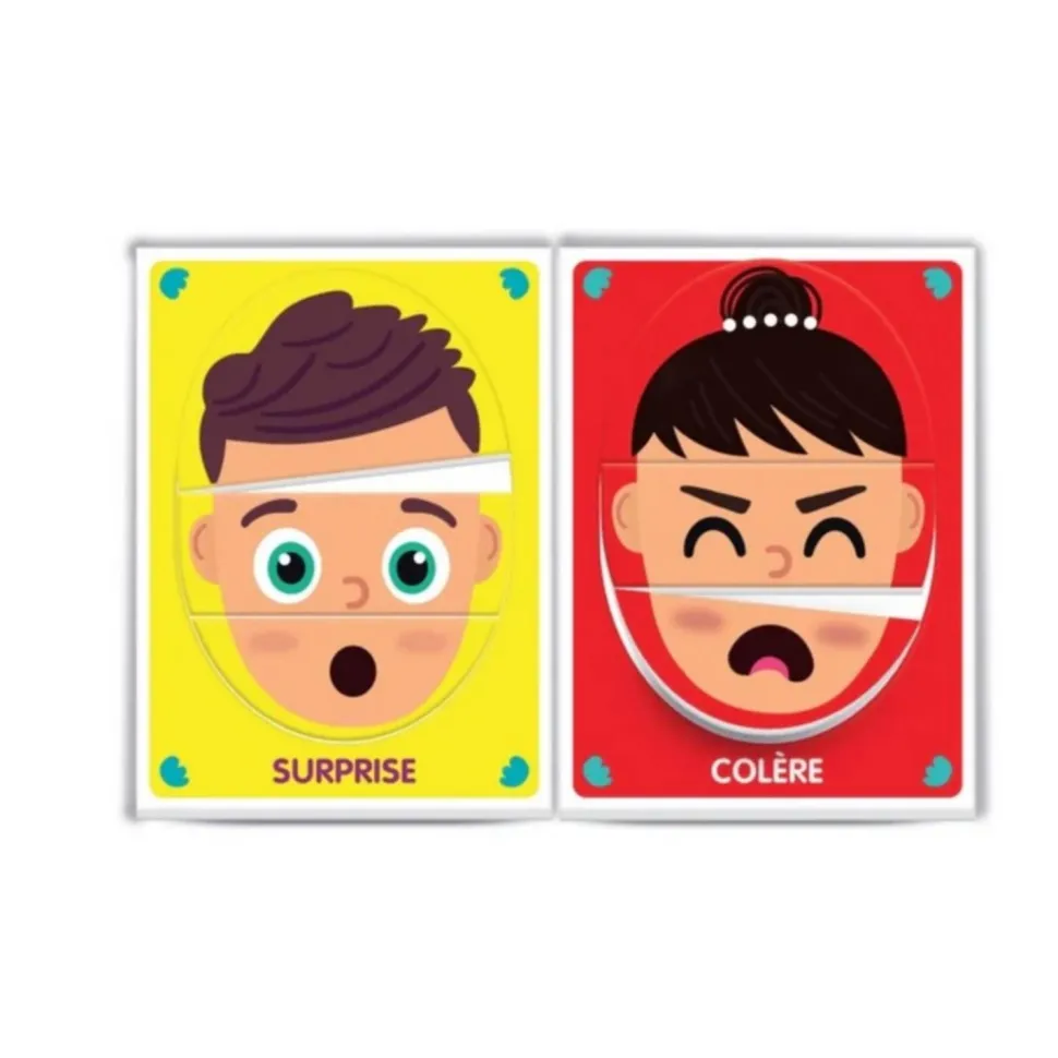 L’enfant recompose les visages exprimant différentes émotions ou combine les pièces entre elles pour créer de nombreux visages amusants.