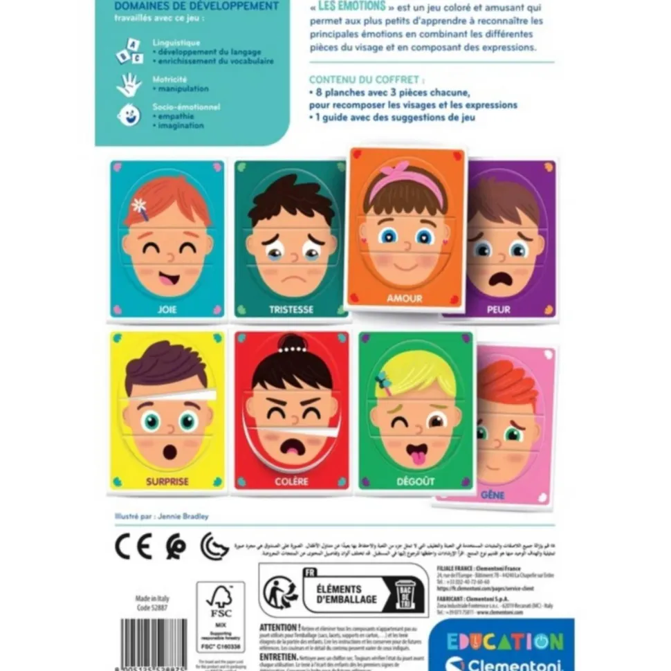 Un jeu pour apprendre à connaître les émotions avec 6 mini-puzzles illustrés à reconstituer de la marque Clementoni !