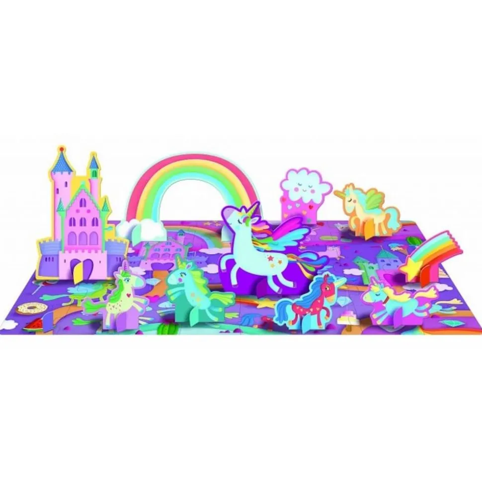 Une boîte décorée avec des détails iridescents contenant un livre de 10 pages, un puzzle de 40 pièces et 10 silhouettes à assembler et à placer sur le puzzle, pour apprendre à reconnaître et à associer les éléments et les mots. Ce coffret féerique plonge les enfants dans un univers magique peuplé de licornes colorées et d’éléments fantastiques. Découvre le monde coloré des licornes ! Feuillete le livre, construis le puzzle et apprends à reconnaître les différents éléments qui caractérisent le monde de ces créatures magiques. Grâce à ses illustrations douces et ses formes prédécoupées à manipuler, l’enfant développe son vocabulaire, sa motricité fine et sa capacité d’association de manière ludique. Une activité complète pour éveiller la curiosité et stimuler l’imagination des enfants dès 4 ans.