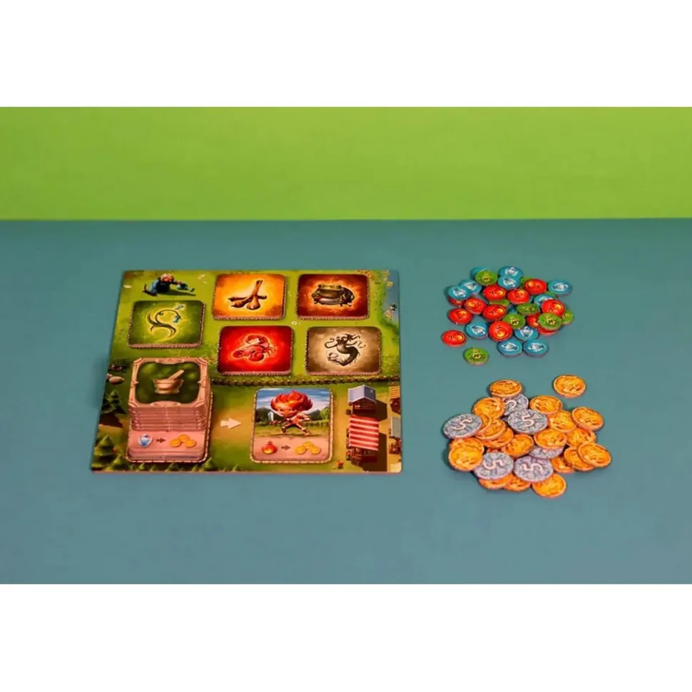 Les Petits Alchimistes est un jeu de déduction familial conçu pour évoluer avec l’esprit curieux des jeunes joueurs. Le jeu commence par des concepts et des mécanismes simples ; vous commencerez par rassembler et combiner des ingrédients pour préparer des potions à vendre. Cependant, au fur et à mesure que vous accumulez des clés en atteignant vos objectifs de fabrication de potions, vous débloquez de nouveaux chapitres qui ajoutent progressivement plus de composants, de mécanismes et de complexité à l’expérience.