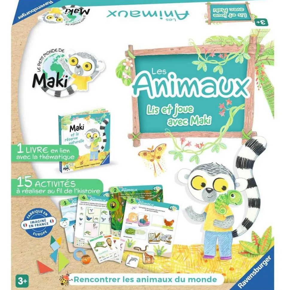 Avec ce coffret Ludo-éducatif « Lis et joue avec Maki – Les Animaux » de la marque Ravensburger, partez avec votre enfant à la découverte des animaux du monde entier.