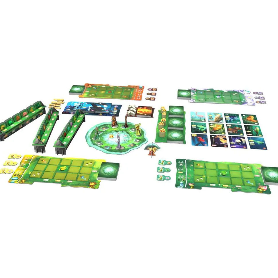 Une nouvelle Action est possible : vous pouvez utiliser vos Fleurs pour acheter les nouvelles cartes Kodama. En plus de vous apporter des éléments comme les cartes Animal gardien, les Kodama vous apportent un symbole Kodama. Au début de votre phase d’Action, 2 symboles vous permettent de prendre 1 tuile Fragment, 3 symboles de prendre 1 nouvelle tuile Élément et 4 symboles de réaliser une Action de base supplémentaire.