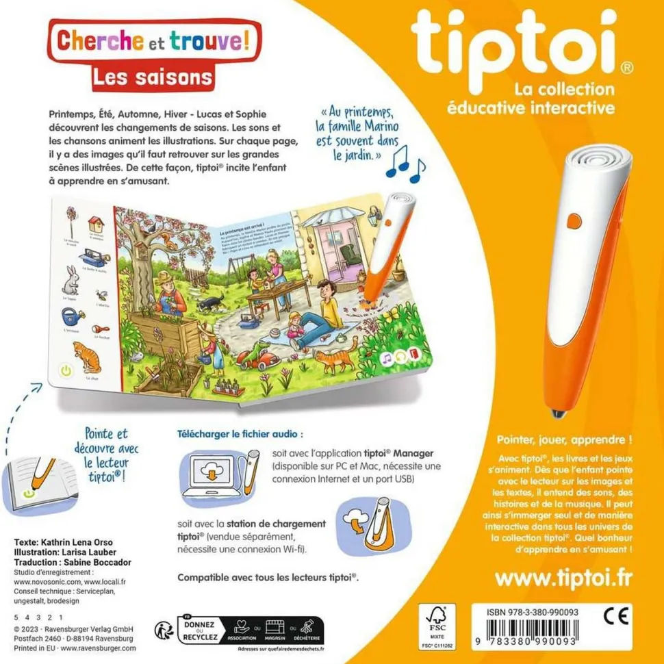 Retrouvez sur notre site le Livre Interactif Tiptoi – Cherche et trouve – Les saisons de la marque Ravensburger ! Le lecteur tiptoi (stylo) est non inclus et vendu séparément.