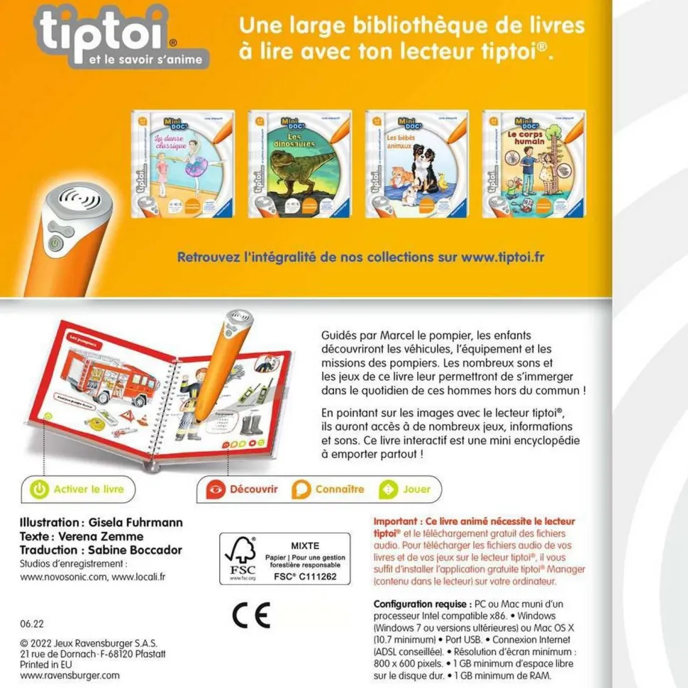 Caractéristiques détaillées : Livre Interactif Tiptoi – Mini Doc’ – Les pompiers