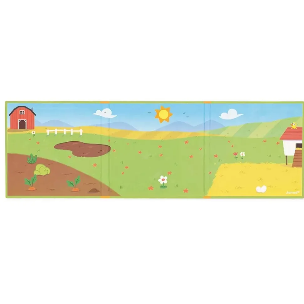 Cocorico, petit fermier ! Vos enfants sont invités à la ferme dès leurs 3 ans avec ce décor magnétique illustré alliant moissons et petits cochons. Ce jeu magnétique se compose d’un décor aimanté ainsi que de 30 magnets. La motricité fine, au cœur des premiers apprentissages de votre enfant, sera développée par la préhension des pièces aimantées. L’imagination ne sera pas en reste, chaque magnet une fois plongé dans le décor invite l’enfant à se créer ses propres histoires. Le décor peut se dresser verticalement, permettant à votre enfant de vous conter ses histoires ! De plus, ce même décor est pliable facilitant son transport, plus aucunes barrières ni même celles des moutons ne se dresseront devant l’imagination de votre petit.
