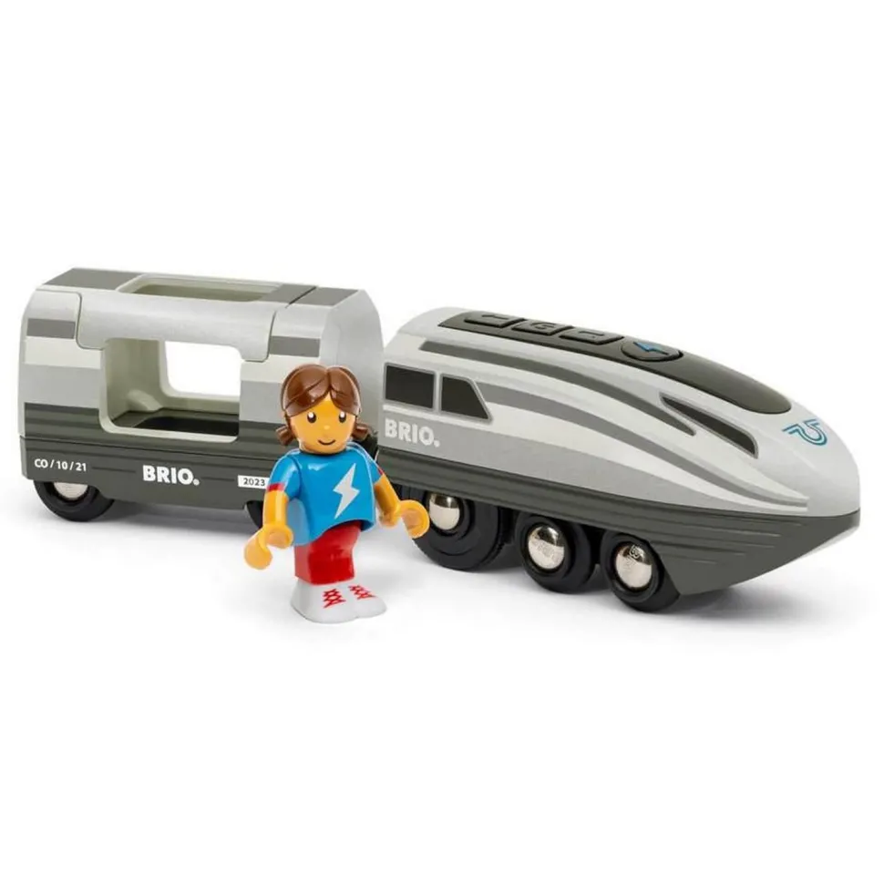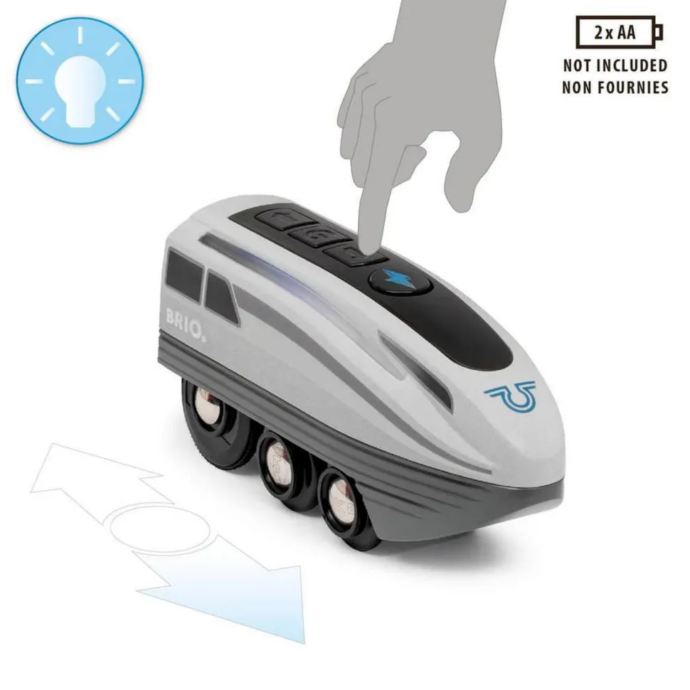 Vous ne serez plus jamais en retard grâce à la locomotive à piles Super rapide de la marque BRIO !