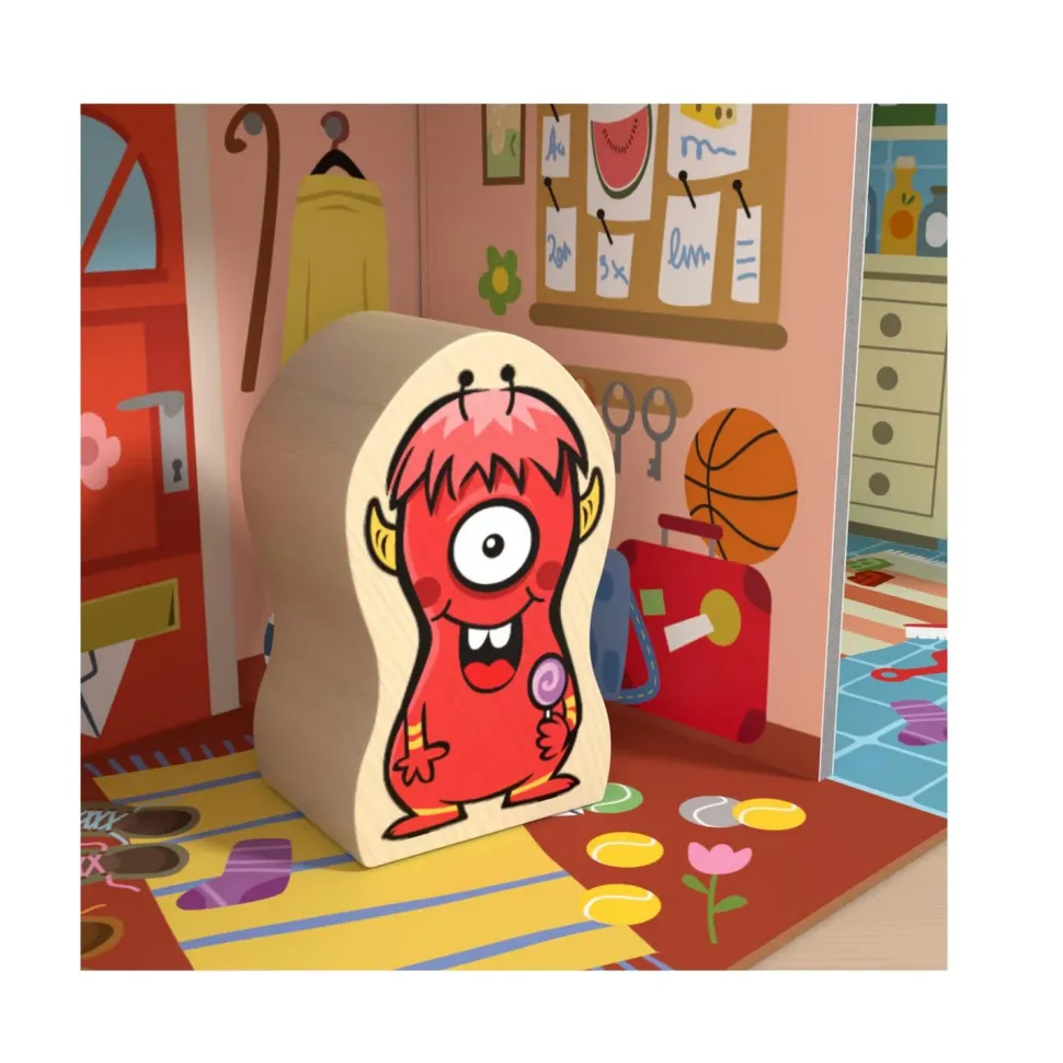 La malicieuse Wanda adore jouer à cache-cache. Toute sa famille passe son temps à chercher ce petit monstre rouge. Dans ce jeu de société solo, l’enfant aide la famille Monstre à retrouver Wanda dans la maison colorée et bien remplie. Il suit les consignes données dans le livret et place les monstres dans les pièces indiquées pour retrouver la trace de Wanda. Pour y parvenir, il faudra user de son sens de l’observation, être perspicace et savoir se repérer dans l’espace. Il y a 60 missions au niveau de difficulté croissant à relever.