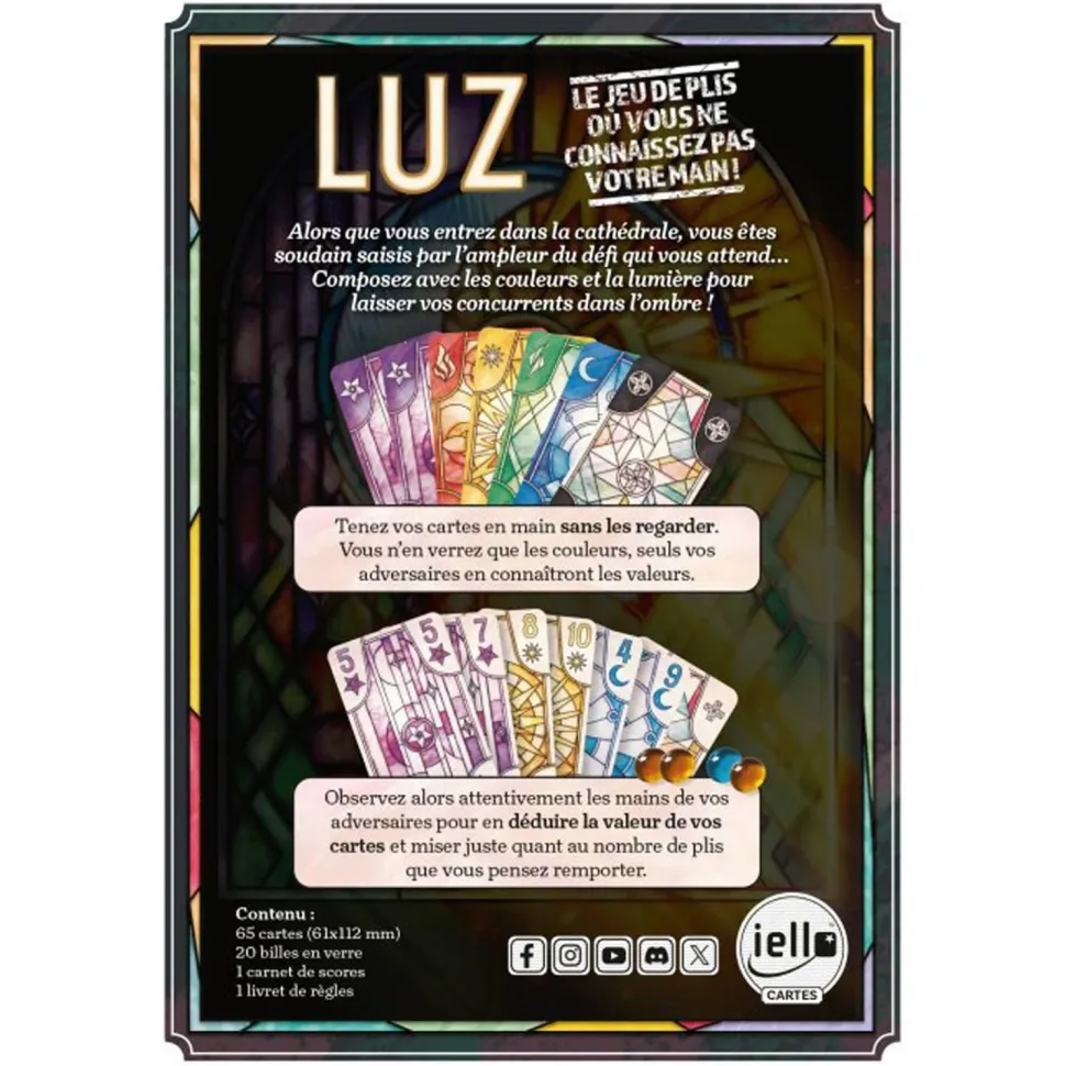 Luz vous plonge dans un jeu de plis original où vous ne connaissez pas la valeur de vos cartes, seulement leur couleur ! Tenez vos cartes face aux adversaires, qui les ont triées par ordre croissant, et tentez de deviner la valeur de chacune en observant les leurs.Après la distribution, misez sur le nombre de plis que vous pensez remporter durant les 10 plis de la manche. La précision de votre pari sera cruciale pour la victoire. Ce jeu captivant mêle déduction, prise de risque et audace pour des parties pleines de suspense et de retournements. Saurez-vous adapter votre stratégie au fil des cartes jouées et de vos suppositions ?