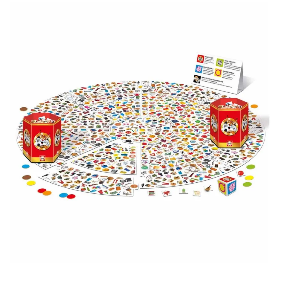 L’intemporel jeu du Lynx revient dans une version super champion qui promet des parties plus endiablées que jamais. À vos marques, prêts… jouez ! Le premier joueur qui arrive à repérer l’image piochée parmi les 1000 présentes sur le grand plateau du jeu remporte la manche. Le jeu comprends 5 défis différents, lancez le dé géant et vous saurez comment jouer ce tour !
