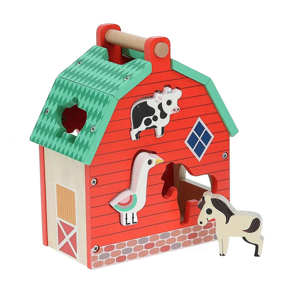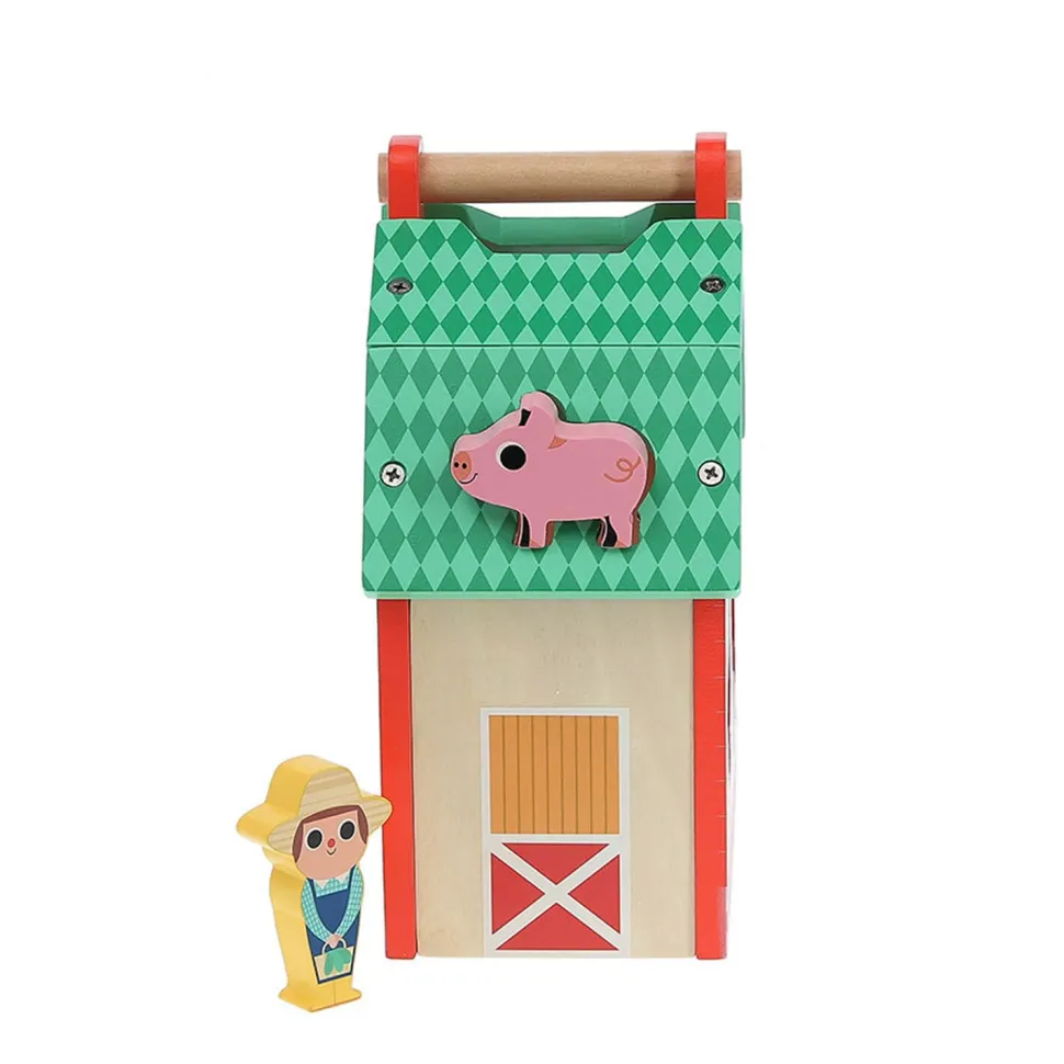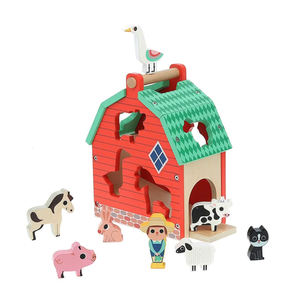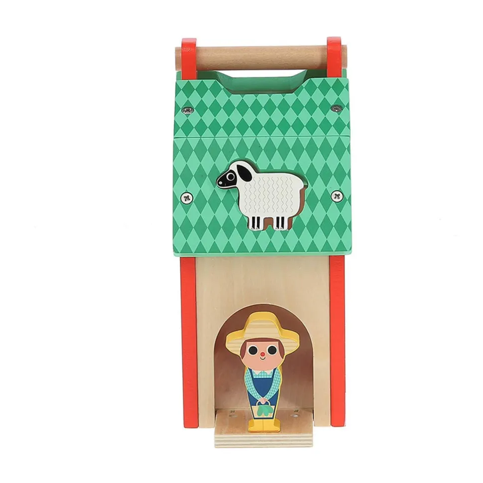 Ils vont s’amuser avec ce jeu d’éveil peuplé d’animaux, qui trouvera également sa place comme déco dans leur chambre. Ils apprendront à leur rythme à manipuler les animaux pour les encastrer dans les espaces correspondants. Une fois encastrées, les pièces sont facilement récupérables grâce à la porte basculante de la maison et à la pente inclinée à l’intérieur.
