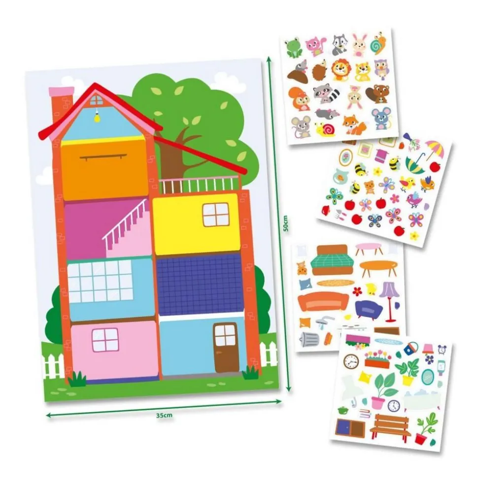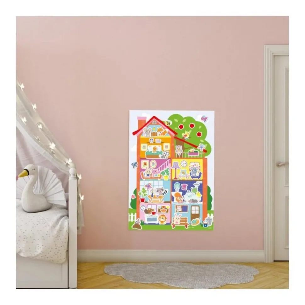 L’activité encourage les enfants à utiliser leur créativité et leur imagination en leur offrant la possibilité de personnaliser entièrement leur affiche. Ils peuvent choisir où placer chaque autocollant, créant ainsi leur propre version d’une maison confortable. Les autocollants sont conçus pour être faciles à appliquer et sont également réutilisables, offrant ainsi un plaisir de jeu prolongé et la possibilité de modifier leur création à volonté.