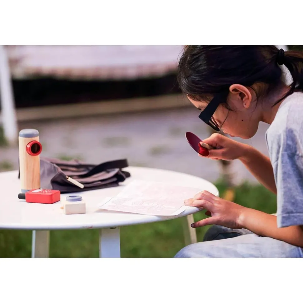 Les enfants adorent explorer le monde qui les entoure, et l’ensemble de détective est le moyen idéal pour les aider à le faire ! Encouragez vos enfants à retrouver le chat disparu en ville en utilisant la lentille rouge pour repérer les empreintes de pas sur notre journal. Cet ensemble contient tout ce dont votre petit détective a besoin : des lunettes, un talkie-walkie, un appareil photo, une lentille rouge, un périscope et un sac. Renforce la communication et les compétences sociales, encourage le développement créatif et améliore la capacité cognitive.