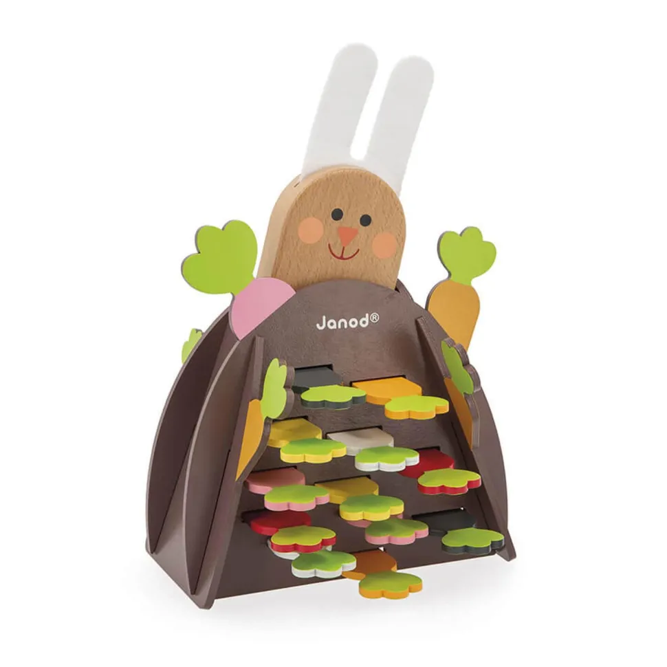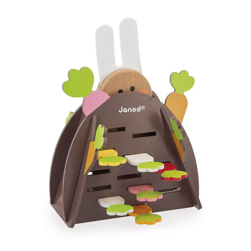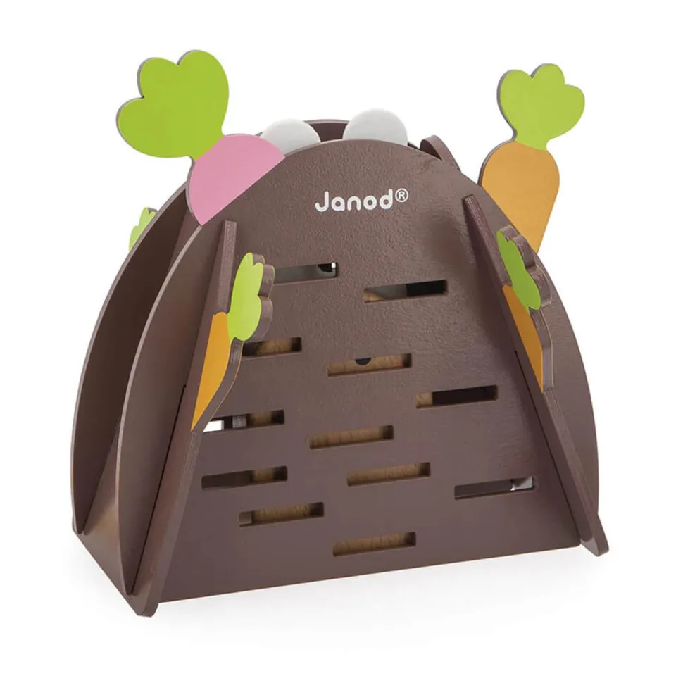 Attention, le premier à faire tomber le lapin au fond du terrier a perdu ! Trop rigolo, quand le lapin arrive tout en bas, seules ses oreilles en feutrine dépassent du terrier ! Idéal pour apprendre à jouer à tour de rôle, ce jeu de stratégie se joue à partir de 2 joueurs. Un support parfait pour jouer entre copains ou en famille !