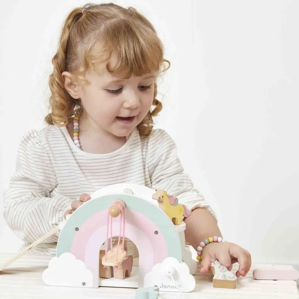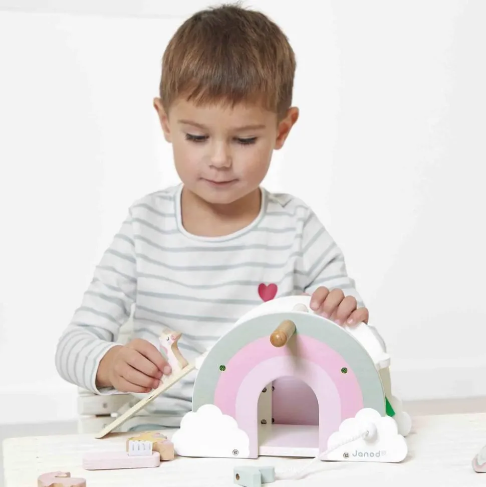 En forme d’arc-en-ciel, cette maison en bois accueille les histoires fabuleuses des enfants. Cette maison magique favorise le développement de l’imagination des petits. Découvrez sans plus attendre toutes les surprises dont ils pourront profiter ! En manipulant les personnages en bois et les différentes ouvertures, les petits développent leur motricité en s’amusant.