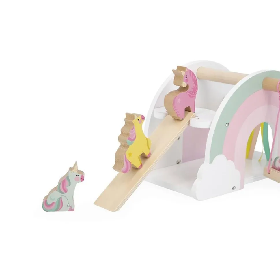Contenu du jeu : 4 figurines licornes et 2 accessoires en bois