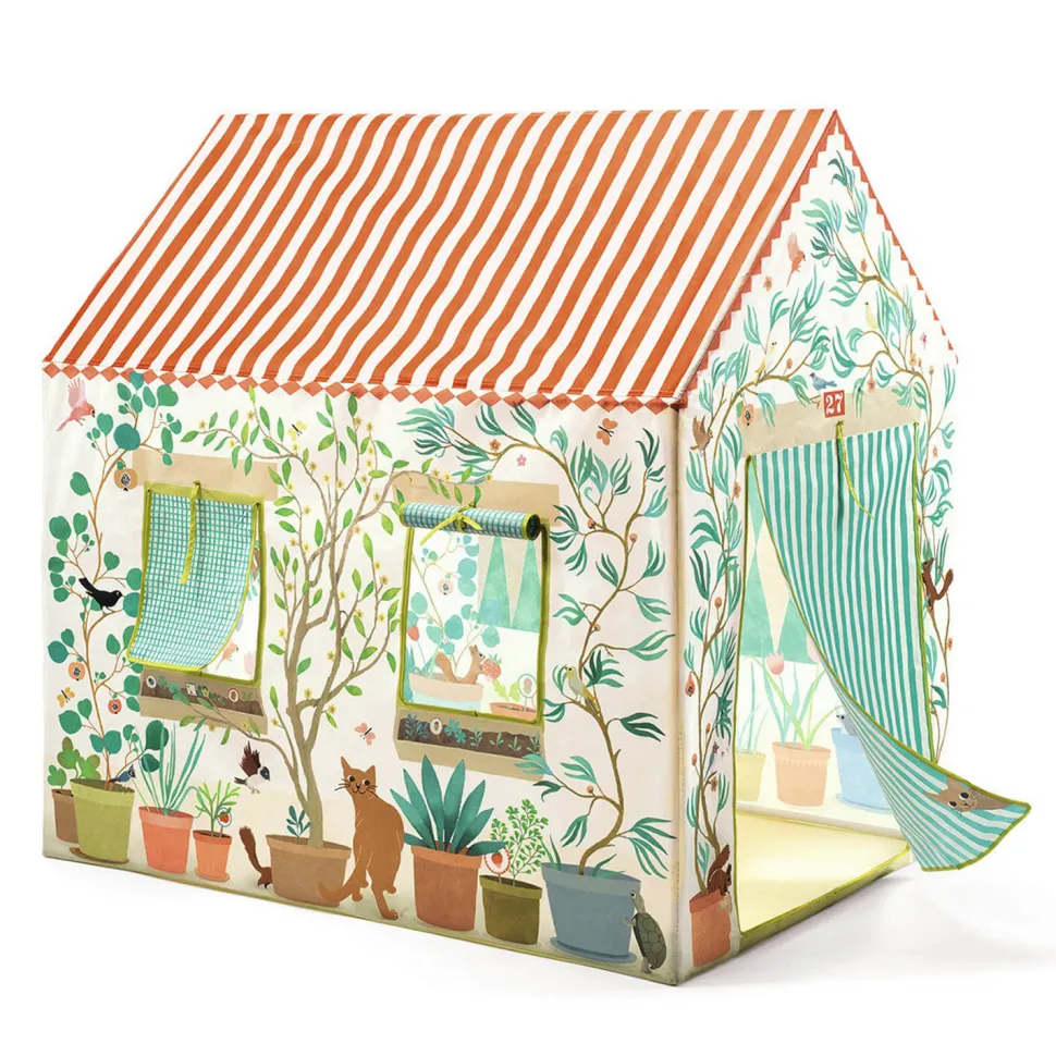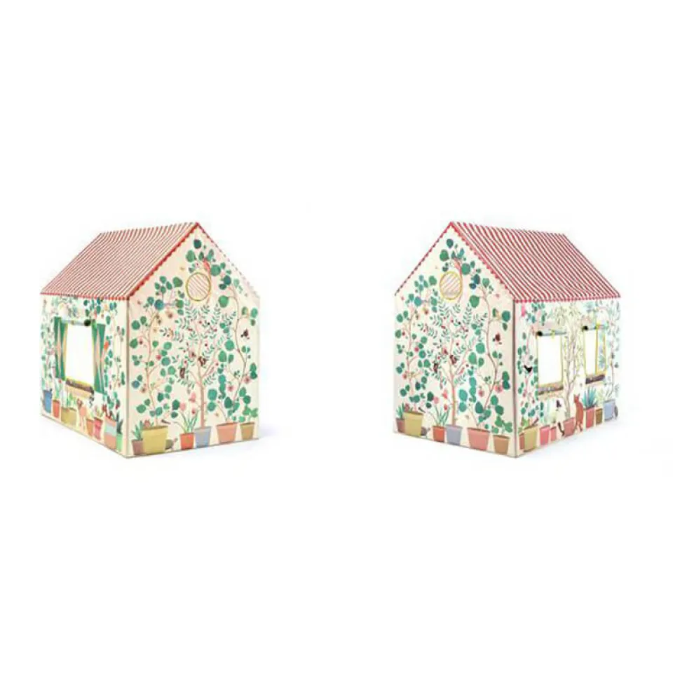 Avoir son propre espace pour jouer comme les grands, votre enfant en rêve ! Avec cette superbe maison en tissu illustré de la collection Little Big Room signée Djeco votre enfant pourra partager d’agréables moments seul ou avec ses amis.Cette cabana fera une cachette idéale et un refuge confortable pour lire, se raconter des histoires, s’imaginer toutes sortes d’aventures, ou encore se reposer le temps d’une petite sieste. Très réaliste, cette maison spacieuse comporte une porte et des fenêtres qui s’ouvrent et se referment avec des liens et est illustrée pour ressembler à une vraie maison. La toiture comporte des rayures blanches et rouges pour imiter les tuiles, la façade est décorée de plantes, il y a même un numéro au dessus de la porte. Tout est fait pour s’y sentir bien et bien accueillir ses amis !Avec ses belles couleurs, cette maison en tissu conviendra dans la chambre ou pourra se fondre dans le jardin les jours de beaux temps.Dimensions de la maison : 100 x 105 x 73 cm.