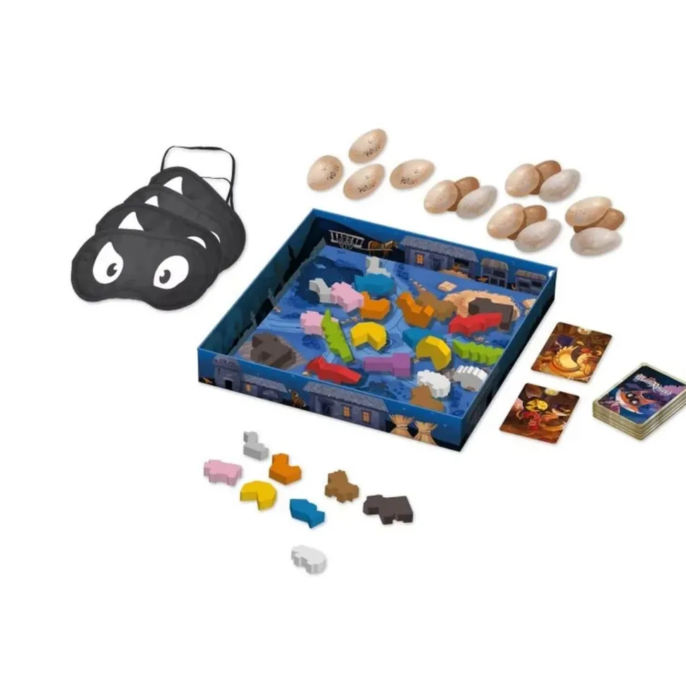 Avec les yeux bandés, reconnaissez des formes par le toucher et complétez les missions demandées ! Chaque tour, trois cartes sont révélés indiquant les animaux recherchés à récupérer dans la boîte le plus vite possible. La dernière manche ajoute quelques subtilités: les bébés renards rapportent des points supplémentaires, les serpents permettent de voler le butin des autres et le marteau vous permettra de vous défendre ! Et attention à ne pas vous tromper de forme…