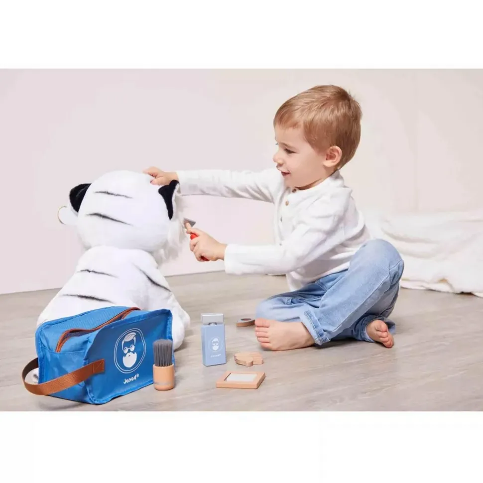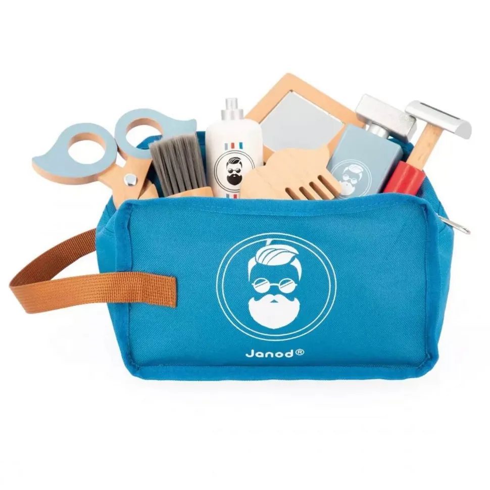 Ce set contient toute une panoplie d’accessoires stylés et imitant à la perfection ceux du coiffeur/barbier : un blaireau et sa mousse à raser pour le visage, un rasoir, un peigne pour la barbe ou les cheveux, des ciseaux trop rigolos, un miroir pour s’admirer et un parfum pour la touche finale ! Voilà un jouet d’imitation complet pour nos apprentis coiffeurs !