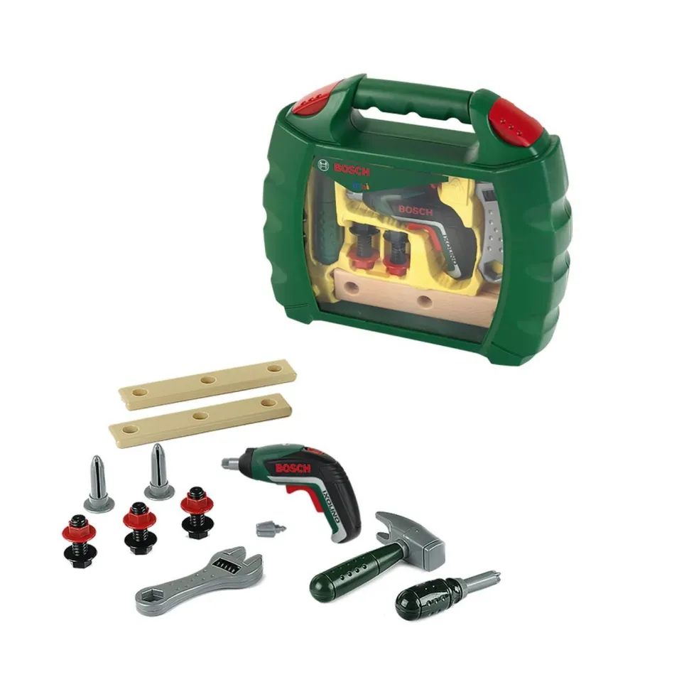 Cette mallette vitrine sous licence BOSCH comprend les accessoires indispensables pour apprendre à bricoler comme les grands :
