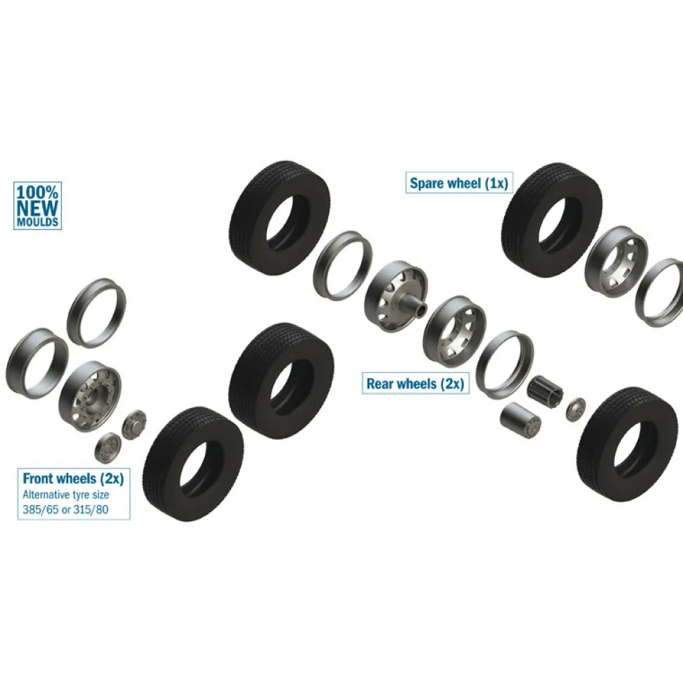 Description du produit : Maquette accessoires camion : Jantes et nouveaux pneus Europe