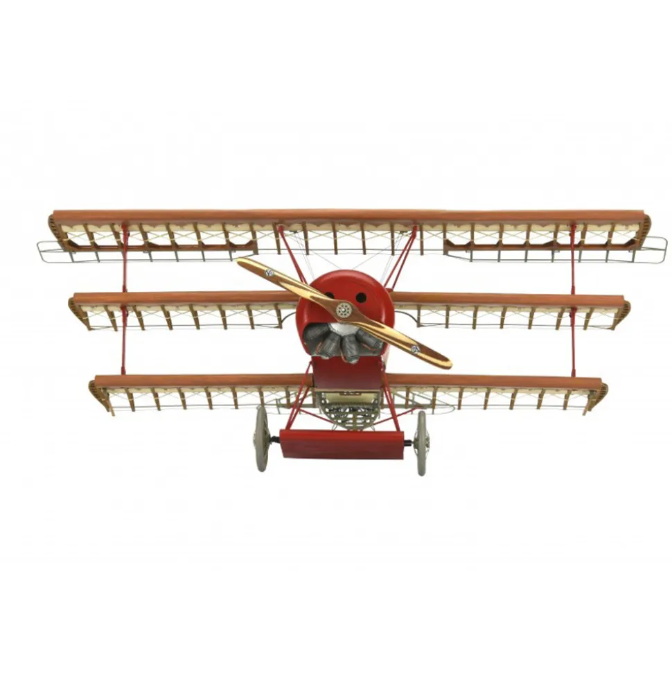 Maquette en bois et en métal à assembler représentant le Fokker Dr.I, avion mythique du Baron Rouge.Nombre de pièces : 750.Cette maquette est réalisée en bois et en métal, reproduisant fidèlement le modèle original à l’échelle 1/16.Le kit contient de très nombreux détails en photo-découpe en acier et laiton qui vous permettront de reproduire le cockpit et le moteur notamment avec grand réalisme.Un socle en acrylique découpé et gravé au laser est fourni pour l’exposer.Dimensions de l’avion assemblé : Envergure 450 mm, longueur 360 mm, hauteur 184 mm (sans le socle).Histoire du triplan Fokker Dr.I :Le Fokker Dr.I était un avion de chasse allemand de la Première Guerre Mondiale. Introduit assez tard (1917), ce triplan est très vite devenu très populaire essentiellement grâce à un pilote, as de l’aviation, Manfred von Richthofen plus connu comme le Baron Rouge. C´est la rencontre de cet homme et de cet avion qui apporta de nombreuses victoires aux allemands.A cette époque là, la plupart des constructeurs d´avions travaillaient sur la conception et la fabrication de triplans. C´est finalement un hollandais, Anthony Fokker, qui créa le triplan qui devint un vrai cauchemar pour les Alliés.Son plus grand rival fut le Sopwith Camel, biplan britannique qui sut faire face avec brio au Fokker.