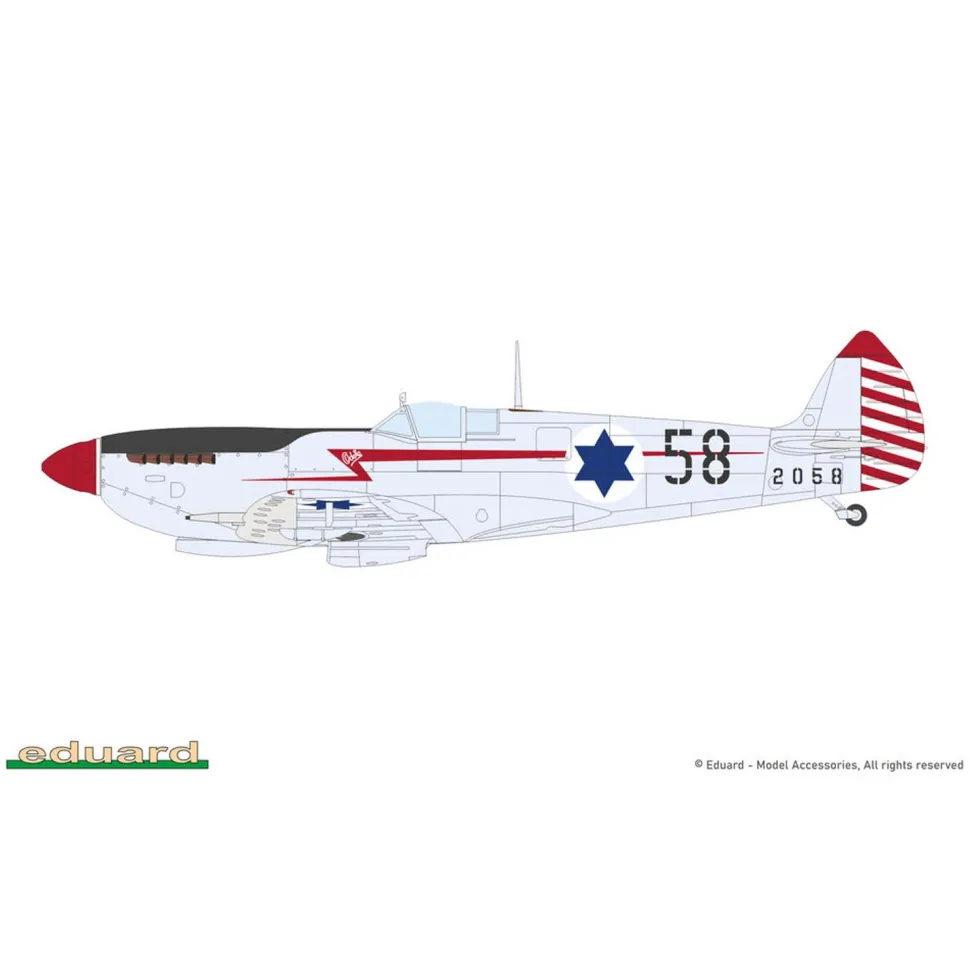 Le kit propose de construire le Spitfire Mark Nine servant dans la RAF, l’armée de l’air tchécoslovaque et l’armée de l’air israélienne.