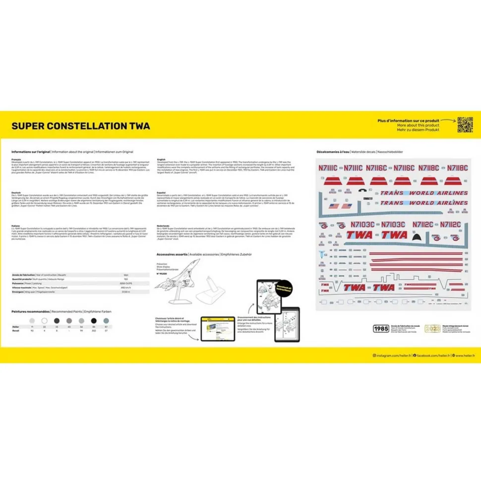 Caractéristiques détaillées : Maquette Avion Starter Kit : Super Constellation TWA