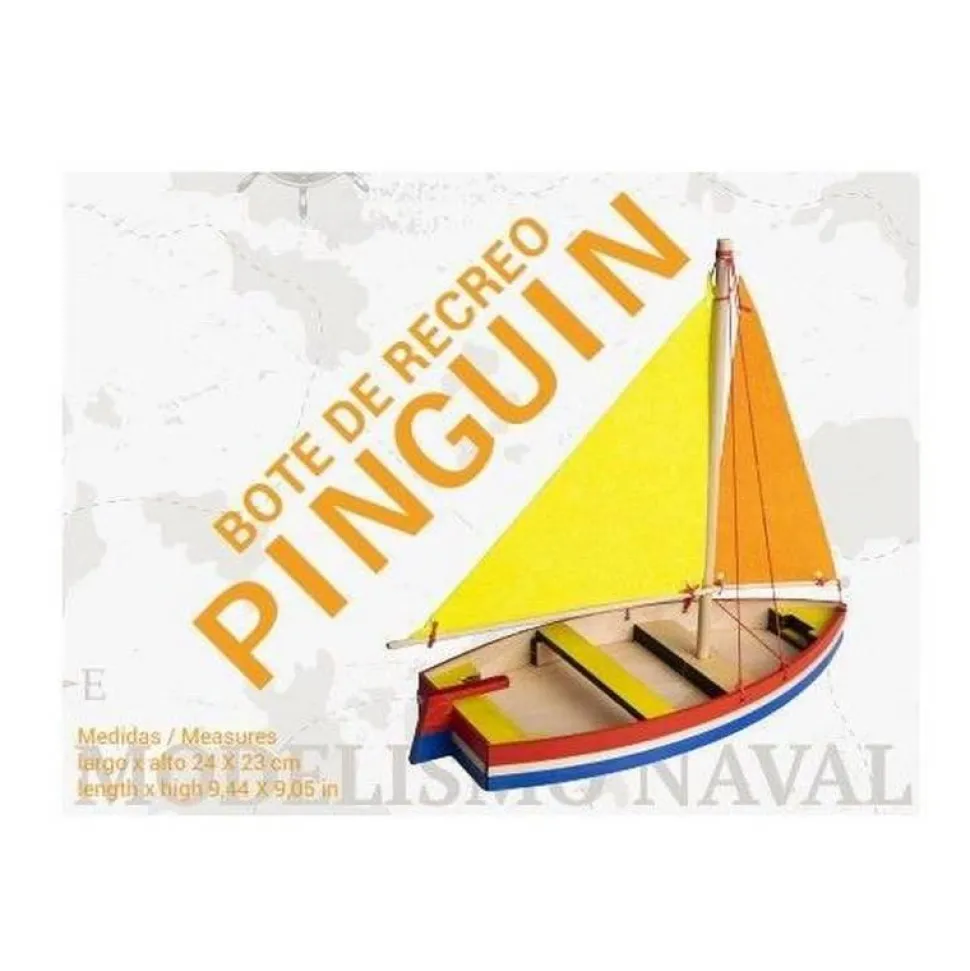 Caractéristiques détaillées : Maquette bateau en bois : Barque avec voile Pinguin