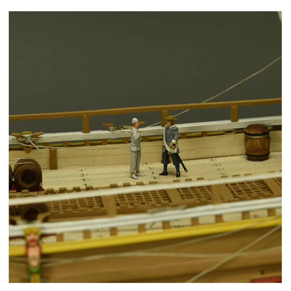 Le modéliste expert, à qui s’adresse cette maquette du Vasa, trouvera également pièces en bois de première qualité, voiles cousues à la main, prêtes à être placées et … Deux bonus en cadeau ! Une base d’exposition en bois avec une plaque de métal nominative et six figurines qui donneront à ce bijou naval encore plus de réalisme qu’il ne l’a fait sans elles.