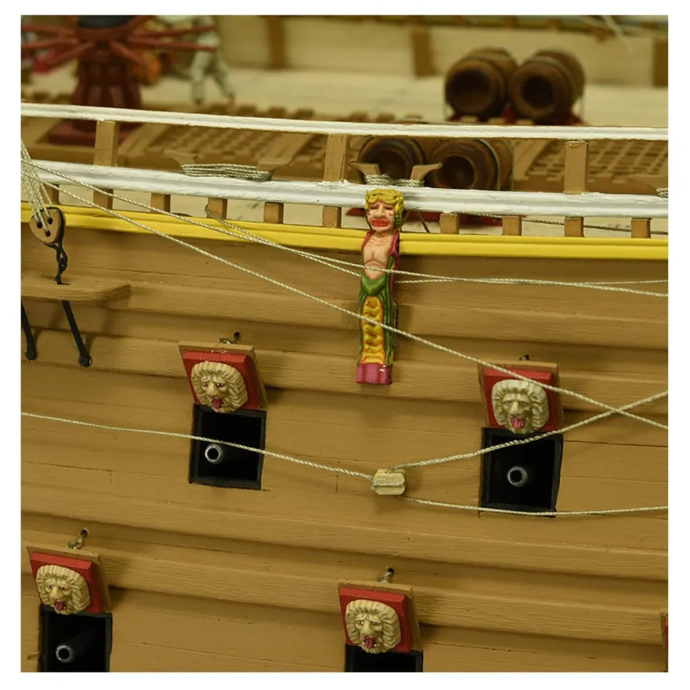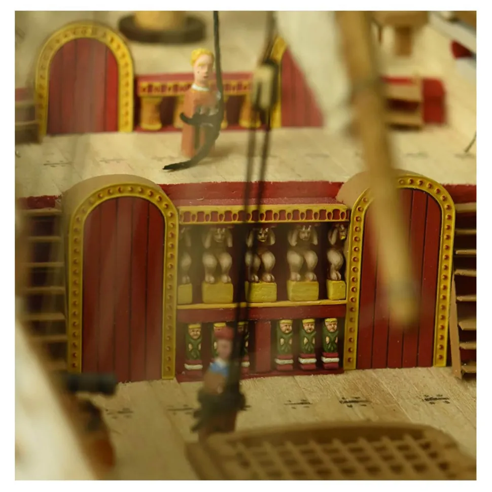 Le kit de modélisme naval avec la maquette en bois du bateau de guerre suédois Vasa 1:65 contient une des répliques les plus détaillées de l’histoire du marché, notamment grâce au grand nombre de sculptures gravées sur la poupe, sans oublier certaines à l’arc. Bien entendu, la maquette du Vasa comprend un grand ensemble de pièces de décoration en die-cast et photodécoupé, qui confère au navire une beauté spectaculaire.